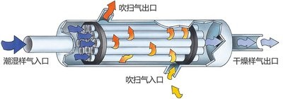 ?? ?滲透管除水:Nafion管脫水避免SO2脫水過程中損耗,使用一組滲透管,儀器分析無需參比氣體;